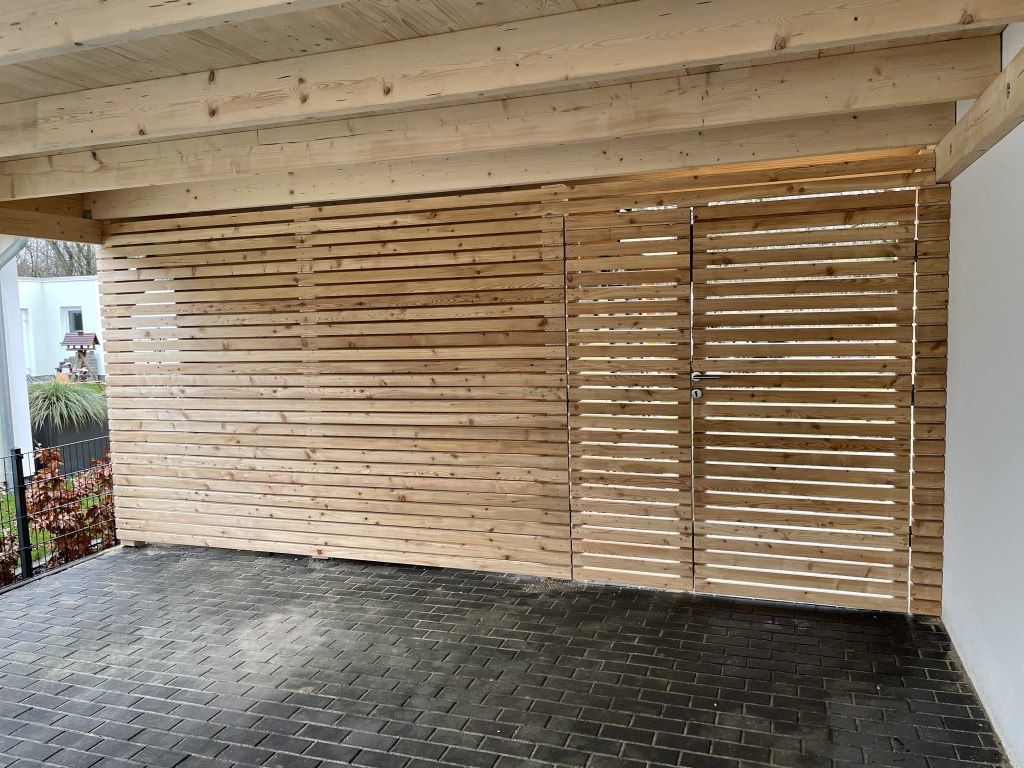 Auf Wunsch integrieren wir auch Schuppen, Türen und Sichtschutzelemente.